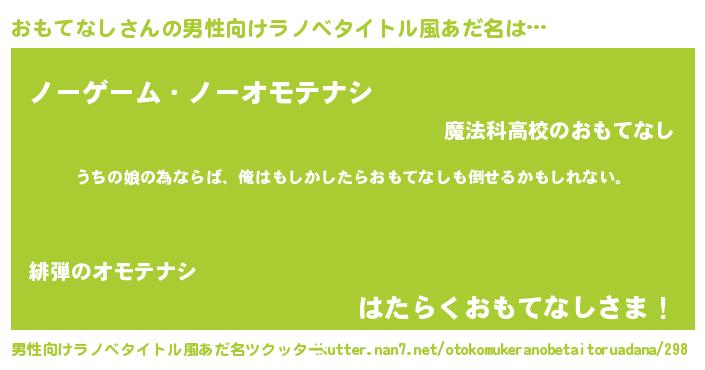 | 胡散臭い通販商品みたいなあだ名 | 『運命の人と巡り会える高級そうな壺…その名も「おもてなし」』 |
