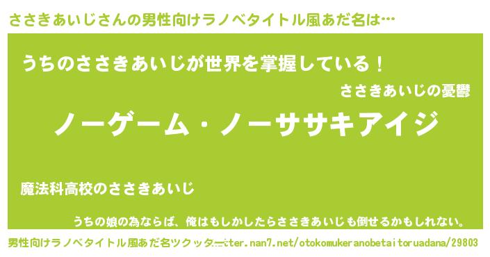 | 女子向けラノベタイトル風あだ名 | 『死神ささきあいじの再婚』 |