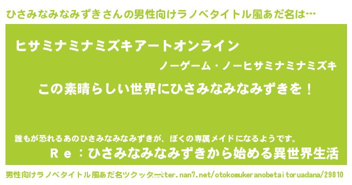 | 欧米人風あだ名 | 『ダレノガレひさみなみなみずき』 |