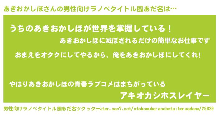 | 女子向けラノベタイトル風あだ名 | 『あきおかしほ夫妻のなれそめ』 |