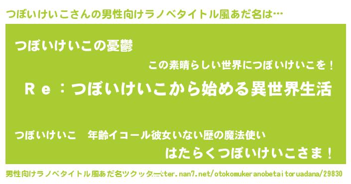 | 意味不明あだ名 | 『自称つぼいけいこ』 |