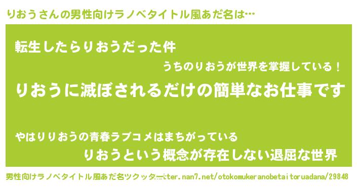 | ヘコむあだ名 | 『りおう(笑)』『豆乳』『りおっ子』 |