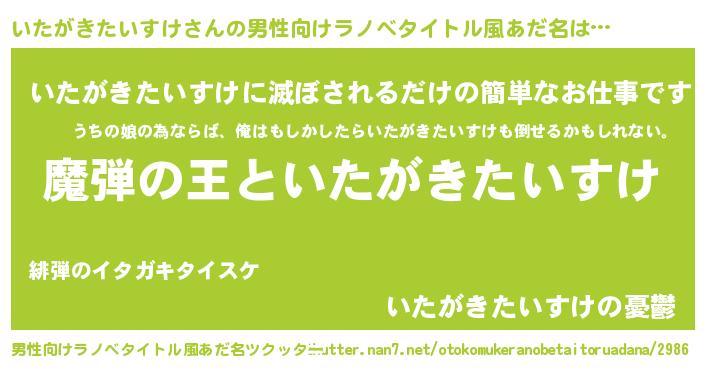 | ヒーロー風カッコイイあだ名 | 『仮面イタダー』『ネオイタガキタイスケ』 |