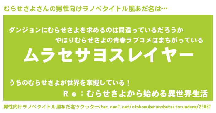 むらせさよさんの男性向けラノベタイトル風あだ名をツクッター!