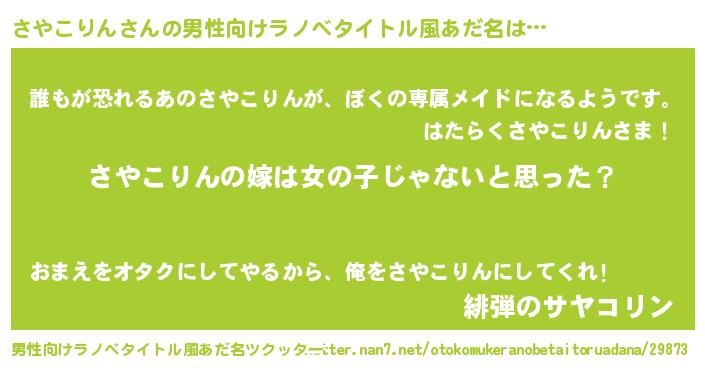| 女子向けラノベタイトル風あだ名 | 『さやこりん様がみてる』 |