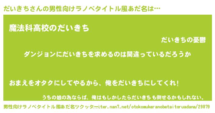 | 女子向けラノベタイトル風あだ名 | 『だいきちは平凡を望む』 |