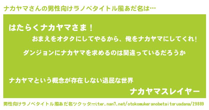 | 女子向けラノベタイトル風あだ名 | 『ナカヤマは平凡を望む』 |