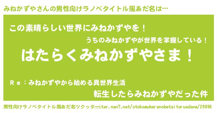 | 意味不明あだ名 | 『住所不定無職みねかずや(81歳)』 |