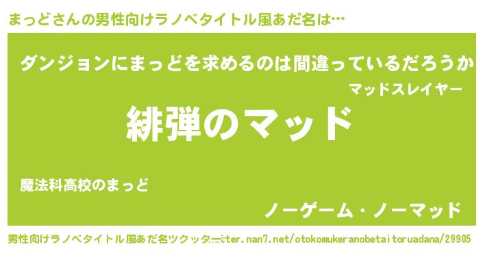 | 胡散臭い通販商品みたいなあだ名 | 『信頼と実績のサプリメント…その名も「まっど」』 |