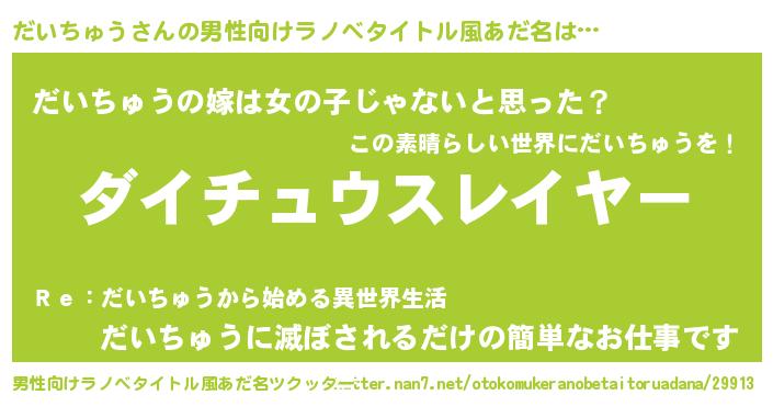 | 萌えアニメ | 主人公(だいちゅう)のあだ名『 だいっち』 |