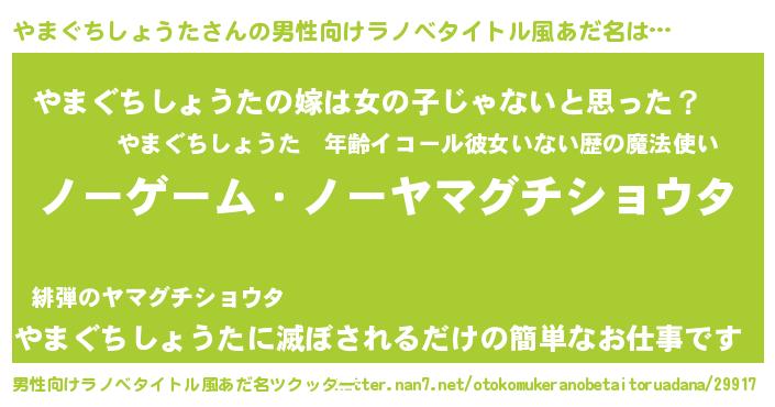 | 女子向けラノベタイトル風あだ名 | 『やまぐちしょうた恋絵巻』 |