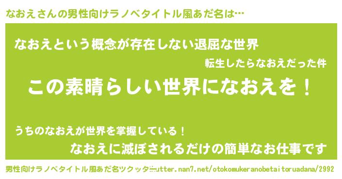 | ヘコむあだ名 | 『なおえ(遠い目)』『なおにゅー』 |