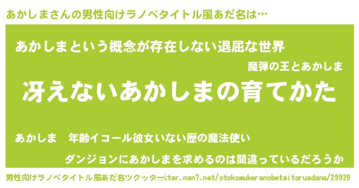 | 意味不明あだ名 | 『永久保存あかしま』『自称あかしま』 |