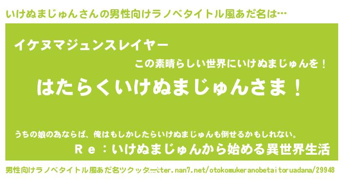 | 胡散臭い通販商品みたいなあだ名 | 『ガンによく効く高麗人参…その名も「いけぬまじゅん」』 |