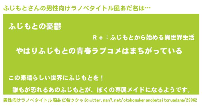 | 女子向けラノベタイトル風あだ名 | 『ふじもとの雑貨屋さん』『闇のふじもと』 |