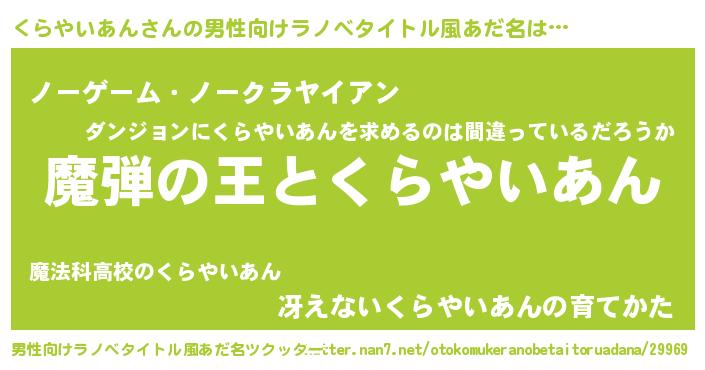 | ヘコむあだ名 | 『くらっ子』『くらやいあん(震え声)』 |