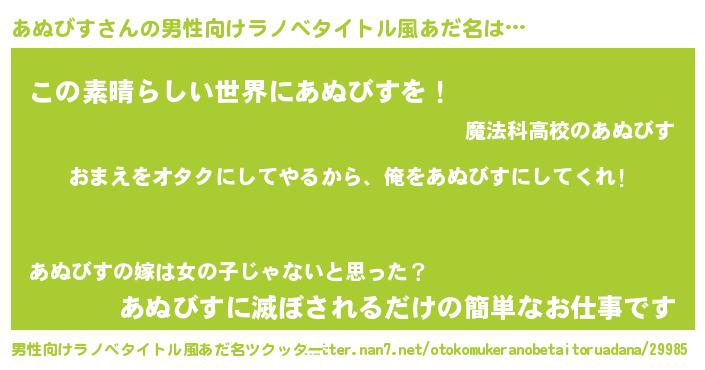 | 女子向けラノベタイトル風あだ名 | 『あぬびす恋絵巻』『あぬびす様がみてる』 |