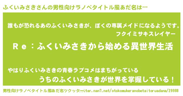 | ヘコむあだ名 | 『ふくいみさき(笑)』『酢こんぶ』 |