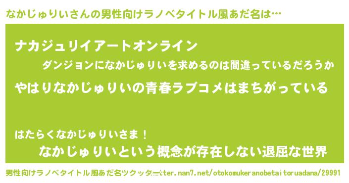 | 女子向けラノベタイトル風あだ名 | 『なかじゅりいの雑貨屋さん』 |