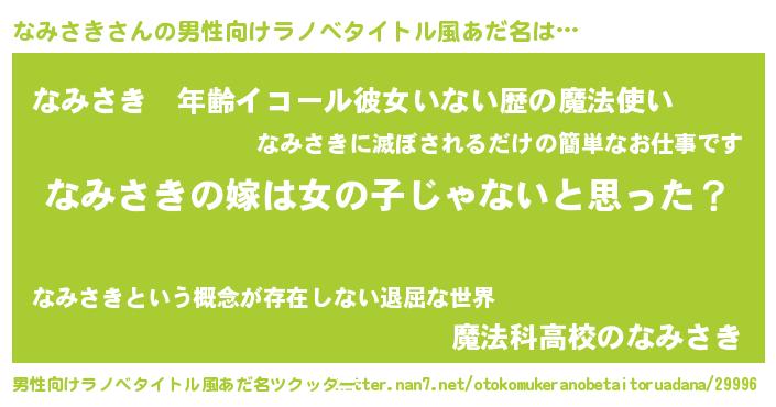 | 女子向けラノベタイトル風あだ名 | 『なみさき様がみてる』 |