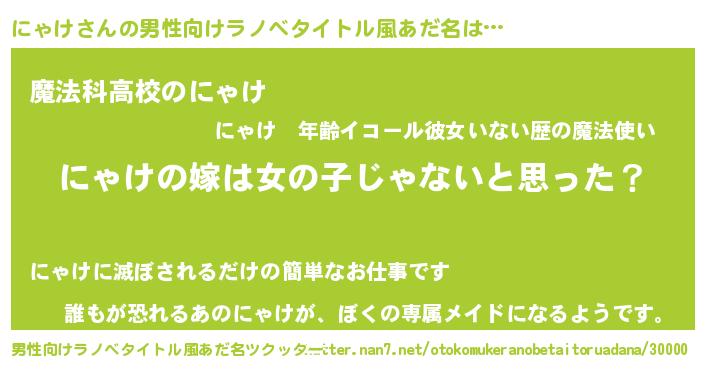 | 伝説のあだ名 | 『覚醒した魔法使いにゃけ』 |