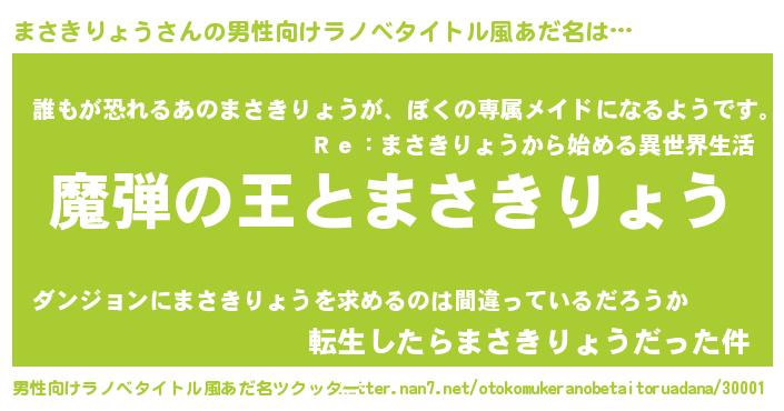| 意味不明あだ名 | 『住所不定無職まさきりょう(68歳)』 |