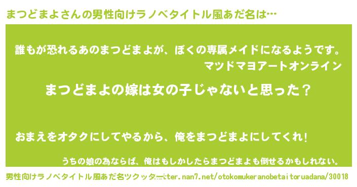 | 女子向けラノベタイトル風あだ名 | 『まつどまよ様がみてる』 |