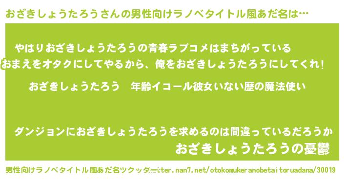 | 女子向けラノベタイトル風あだ名 | 『おざきしょうたろうの玉の輿計画!』 |