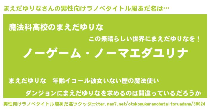 | 女子向けラノベタイトル風あだ名 | 『死神まえだゆりなの再婚』 |