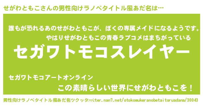 | 胡散臭い通販商品みたいなあだ名 | 『絶対に幸福をもたらす健康食品…その名も「せがわともこ」』 |