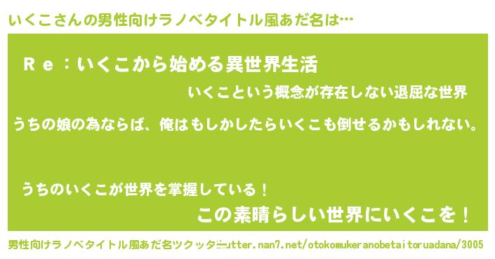 | 女子向けラノベタイトル風あだ名 | 『いくこの婚約者』『闇のいくこ』 |