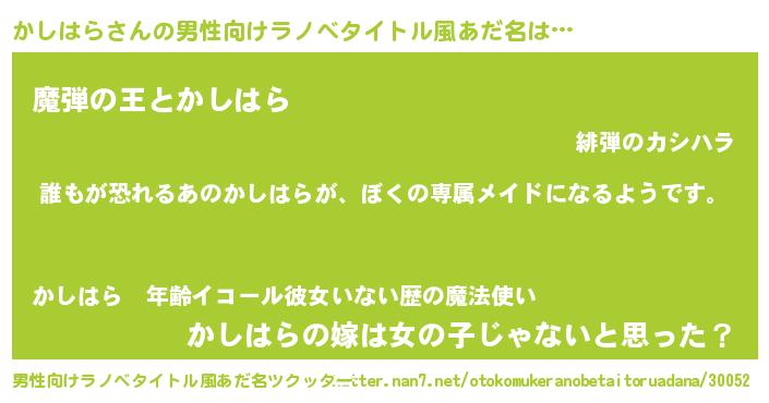 | ヘコむあだ名 | 『かしはら(苦笑)』『かしお』 |