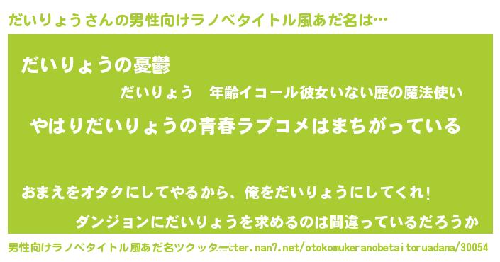 | 女子向けラノベタイトル風あだ名 | 『だいりょうの雑貨屋さん』 |