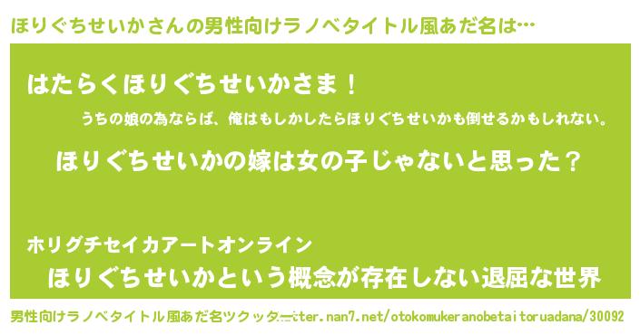 | 女子向けラノベタイトル風あだ名 | 『ほりぐちせいか様がみてる』 |