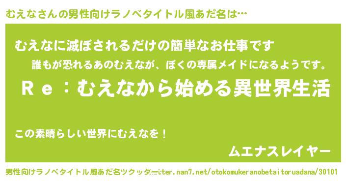 | 女子向けラノベタイトル風あだ名 | 『闇のむえな』『横柄むえなと宰相陛下』 |