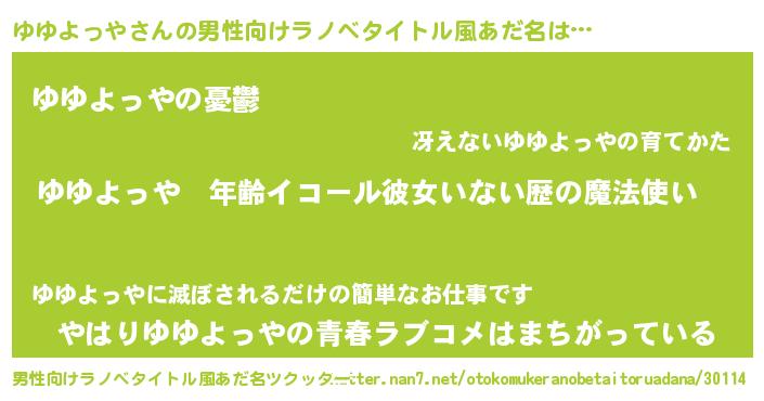 | 女子向けラノベタイトル風あだ名 | 『ゆゆよっやの玉の輿計画!』 |