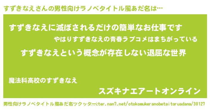 | 胡散臭い通販商品みたいなあだ名 | 『来世でも幸せになれる水素水…その名も「すずきなえ」』 |