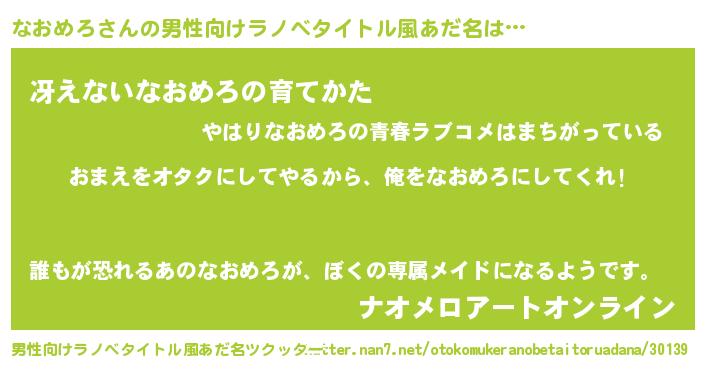 | 女子向けラノベタイトル風あだ名 | 『なおめろ夫妻のなれそめ』 |