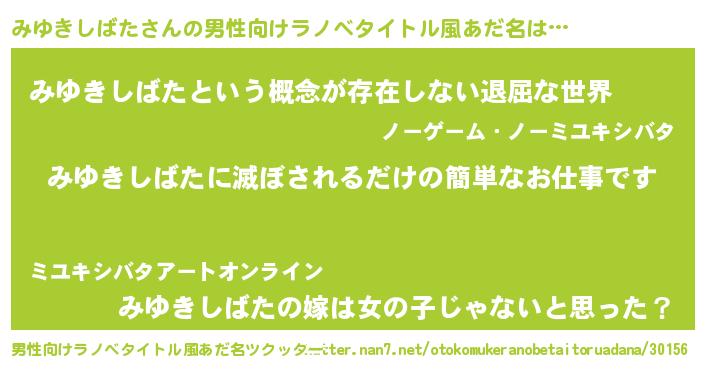 | 女子向けラノベタイトル風あだ名 | 『横柄みゆきしばたと宰相陛下』 |