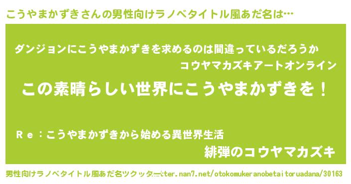 | 胡散臭い通販商品みたいなあだ名 | 『あなたにだけ特別に提供する限定10本のレアな日本酒…その名も「こうやまかずき」』 |