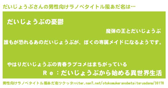 ヒーロー風カッコイイあだ名 | 『ネオダイジョウブ』『仮面ダイダー』 |