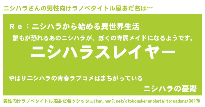 | 肩書あだ名 | 『ニシハラ大佐』『ニシハラ総統』 |