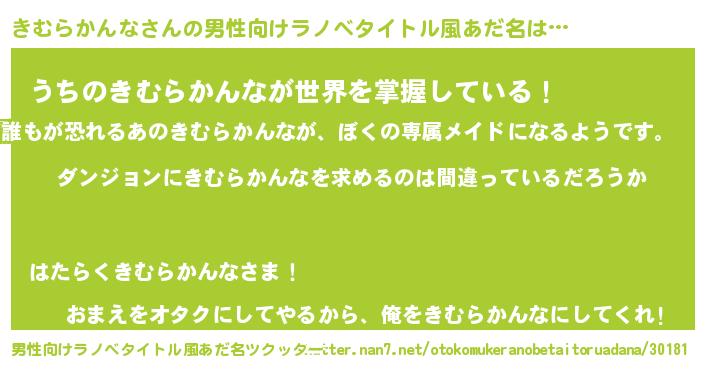 | 女子向けラノベタイトル風あだ名 | 『きむらかんなは平凡を望む』 |