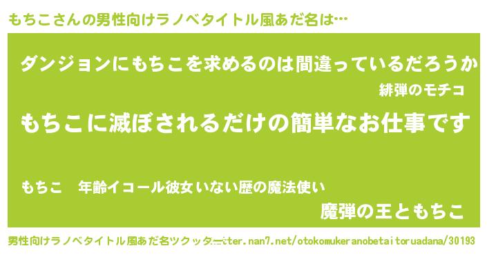 | 意味不明あだ名 | 『とにかく怪しいもちこ』『自称もちこ』 |