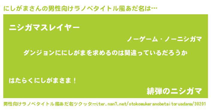 にしがまさんの男性向けラノベタイトル風あだ名をツクッター!