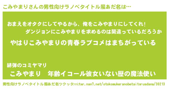 | 女子向けラノベタイトル風あだ名 | 『こみやまりの雑貨屋さん』 |
