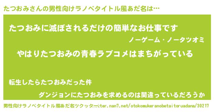 | 女子向けラノベタイトル風あだ名 | 『たつおみの雑貨屋さん』 |
