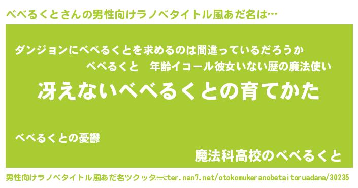 | 胡散臭い通販商品みたいなあだ名 | 『伝統あるサプリメント…その名も「べべるくと」』 |