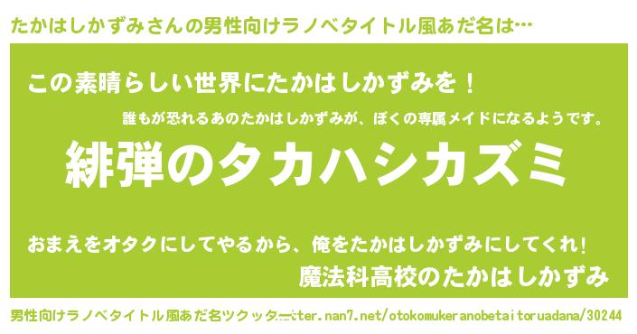 | 女子向けラノベタイトル風あだ名 | 『シンデレラたかはしかずみ家の靴箱館』 |