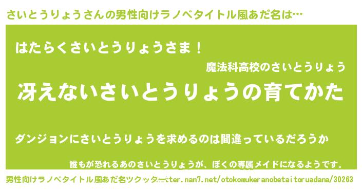 | 意味不明あだ名 | 『永久保存さいとうりょう』 |